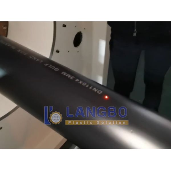 Inkjet printers mark the pipe with specifications (size, pressure rating, manufacturer details).